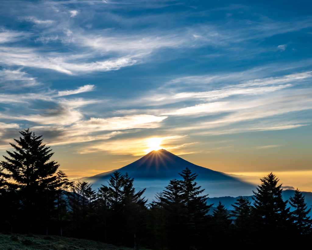 ダイヤモンド富士です。少し左側ですが。。