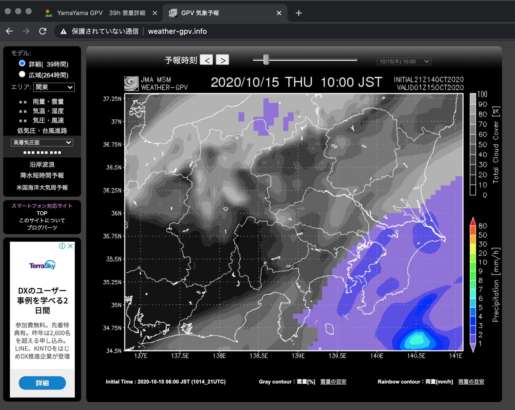 気象の読み方はGPV気象情報が基本で、現地に近くなるとライブカメラで状況の判断をしています。
